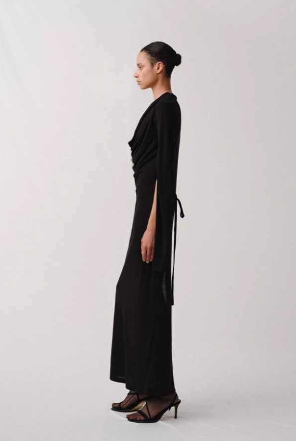 Silk Cascade – Draped Open-Sleeve Dress